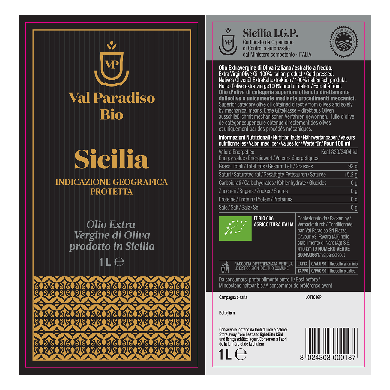 Doppia certificazione BIO e IGP: la sicurezza dell’agricoltura biologica e la qualità dell’olio siciliano certificato. Blend unico delle tipiche varietà siciliane (Nocellare del Belice, Biancolilla e Cerasuola) dal gusto deciso, armonia e intensità della terra d’origine.