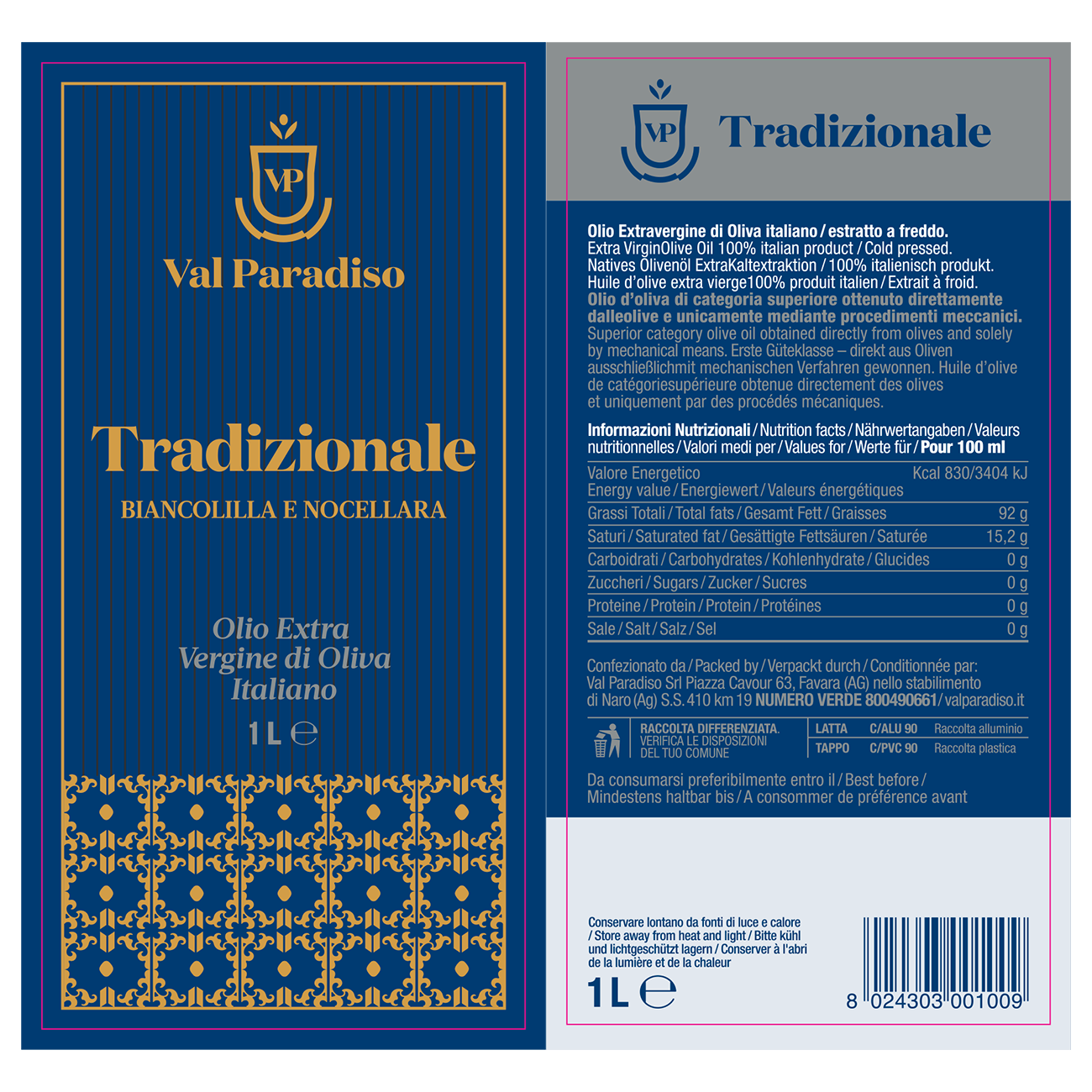 Olio estratto a freddo ottenuto da Biancolilla e Nocellara del Belice, in formato da 1 L comodo in cucina e a tavola per l’uso quotidiano.